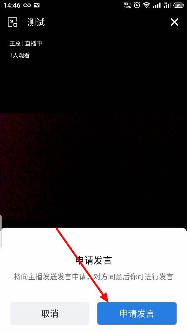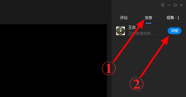 2、点击 申请发言>申请发言,主播点击 同意;