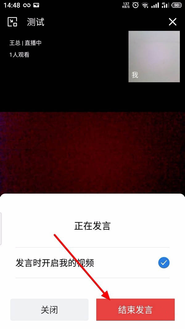 8、弹出操作窗口,点击“结束发言”,发言结束。