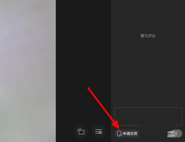 2、进入直播后,点击右下角“申请发言”;