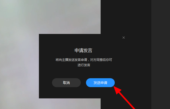 2、点击 申请发言>发送申请,主播点击 发言>同意;
