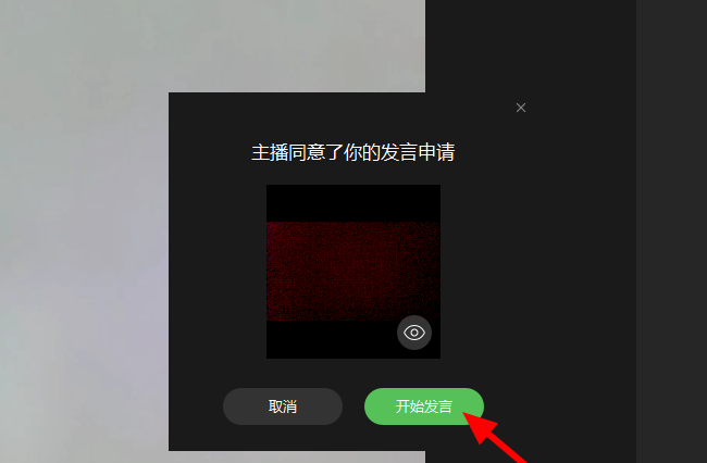 5、主播同意后,弹出窗口,点击“开始发言”,连麦成功;