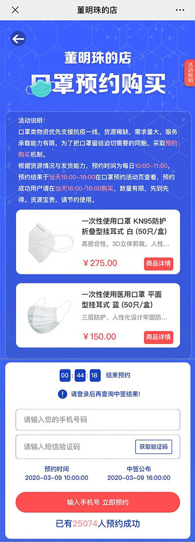 进入董明珠的店首页,点击“口罩预约购买”广告位进入预约界面;