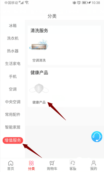 6、之后点击增值服务,然后点击健康产品中的口罩进行预约购买即可。