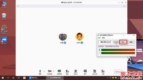 点击“开始”,即可对会议内容进行录制。