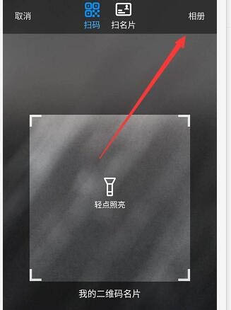 4、在扫一扫的界面里面选择右上角提示的相册按钮。