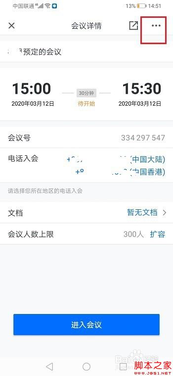 第三步进去会议详情之后,点击右上方的三点图标,如下图所示: