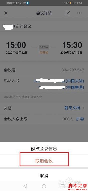 第四步点击三点图标之后,选择取消会议,如下图所示: