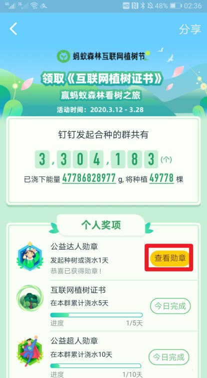 昨天植树节,钉钉可以发起群合种,还可以得到植树勋章,而且可以送给钉钉好友,该怎么送好友植树勋章呢?下面我们就来看看详细的教程。