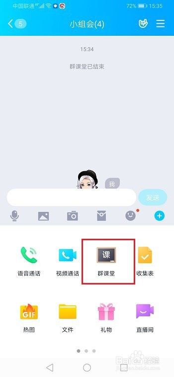 第一步手机上打开qq,进去群聊,点击群课堂,如下图所示: