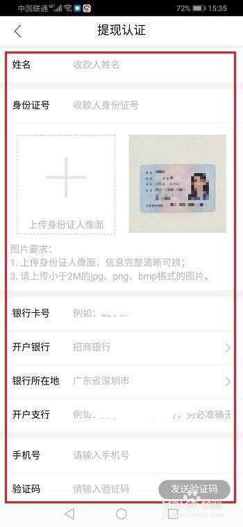 第五步进去提现认证界面,填写个人信息和银行卡信息,进行提交,审核通过,就完成提现认证了,如下图所示: