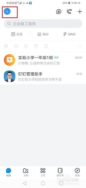 第二步下面我们来解决一直显示直播中的问题,打开钉钉,点击账号头像,如下图所示: