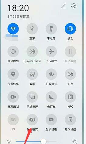 3、更新以后,我们的手机还要支持暗黑模式,安卓上更多的叫法都是深色模式,我们点击下拉菜单, 点击里面的深色模式。