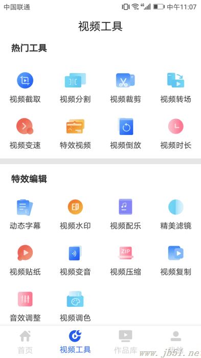 2、因为这里我们要进行的操作是给视频添加背景音乐,所以我们要点击底部的【视频工具】,进入视频工具页面,里面有好多的小功能供你选择。