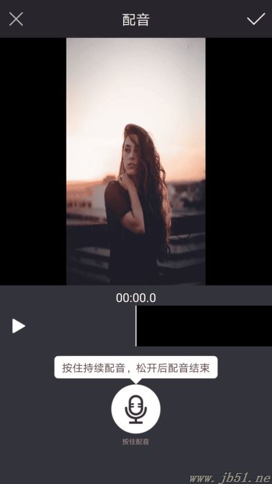 7、直接按住“配音”页面底部的“按住配音”按钮,即可进行配音操作了。另外,配好之后,你可以点击“试听”,试听一下你所配好的配音,觉得不满意的话,还可以点击“重配”,进行重新配音。