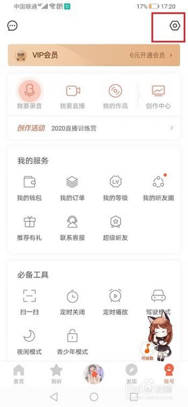 第二步进去我的界面,点击设置图标,如下图所示: