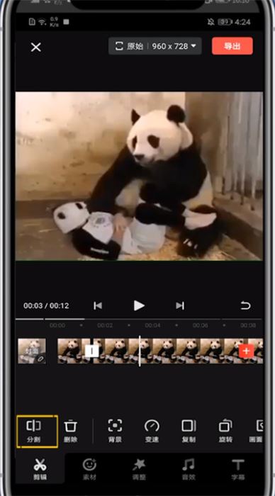 5、再找到结尾镜头点击分割