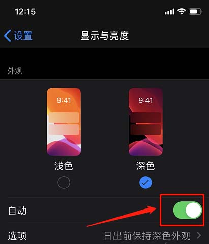 2、关闭“暗黑/深色模式”,同时也要关闭“自动”,否则会自动切换深色浅色模式。