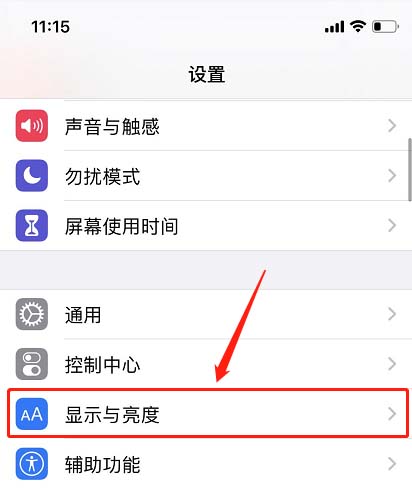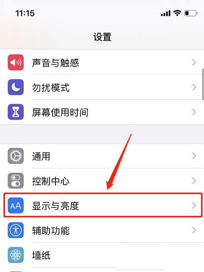 1、进入苹果手机设置,并下滑找到“显示与亮度”。