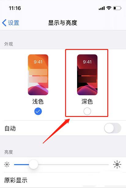 3、点击“深色”,即可打开暗黑/深色模式。