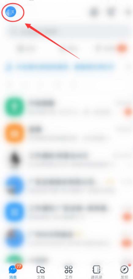 2、进入到钉钉app主页后,选择进入左上角的【头像】选项,进入到详细设置页面中。