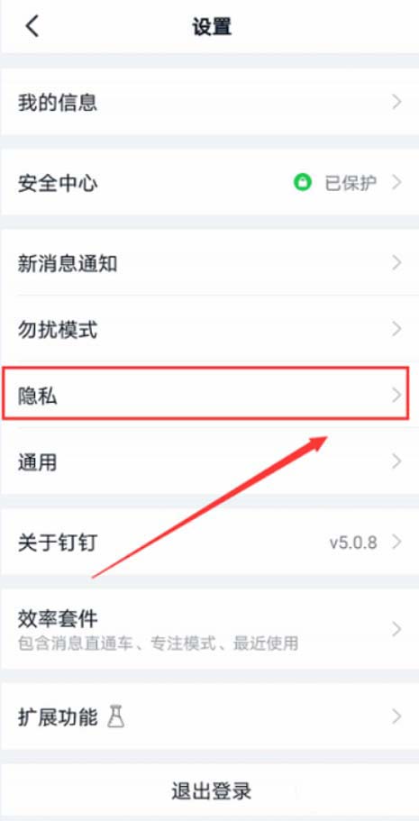 4、进入到了详细页面后,选择【隐私】点击右侧的小箭头进入到详细的页面。