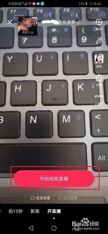 第一步手机上打开抖音,进去我的界面,点击+号,选择开直播,点击开启视频直播,如下图所示: