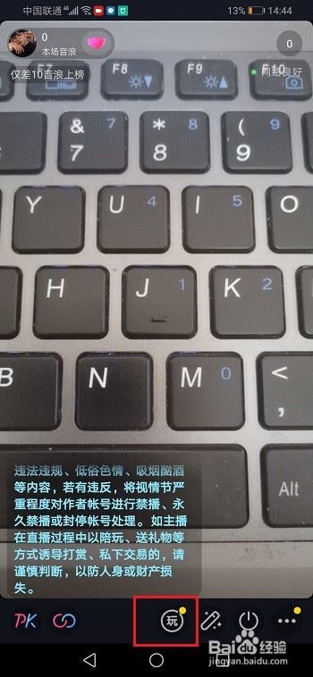 第二步开启视频直播之后,点击玩图标,如下图所示: