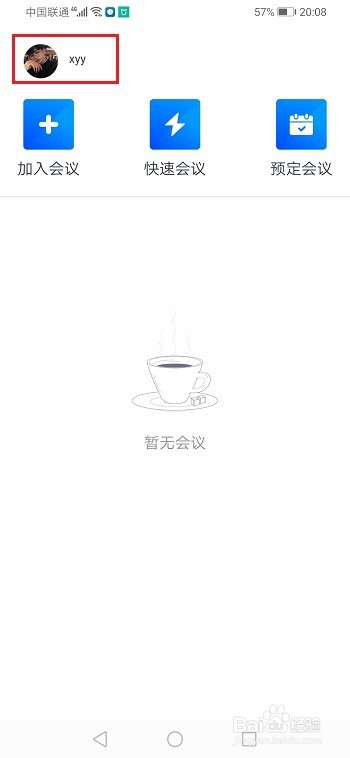 第一步手机上打开腾讯会议,进去之后,点击头像,如下图所示: