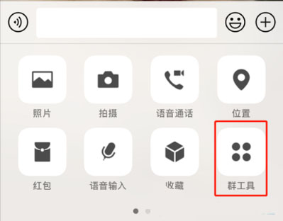2、点击“+”号图标后,即可看到“群工具”选项。