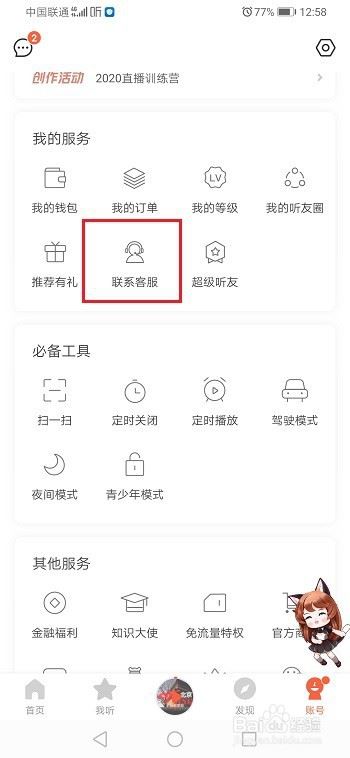第二步进去我的界面,点击联系客服,如下图所示:
