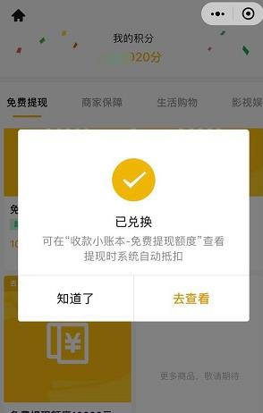 6、点击【确认兑换】,即可完成兑换。下次要提现时就可以用掉这个额度,不用手续费了。
