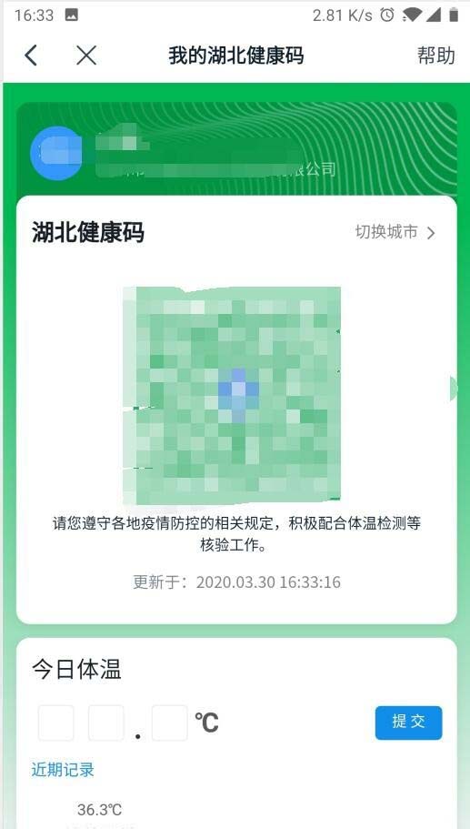 5、领取到以后,就会出现如图所示的健康码信息,这里如果是绿色的就是表示有效的。