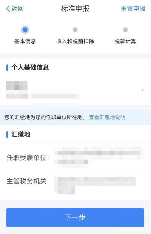 3.然后就是确认信息了,系统会显示个人基础信息,汇缴地等,点击下一步。