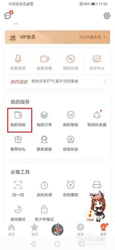 第二步进去喜马拉雅之后,点击我的钱包,如下图所示: