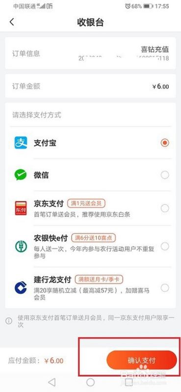 第五步选择支付方式,支付完成之后,就成功充值喜钻了,如下图所示: