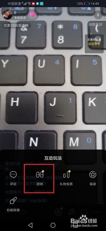 第三步进去直播之后,点击下方的玩图标,如下图所示: