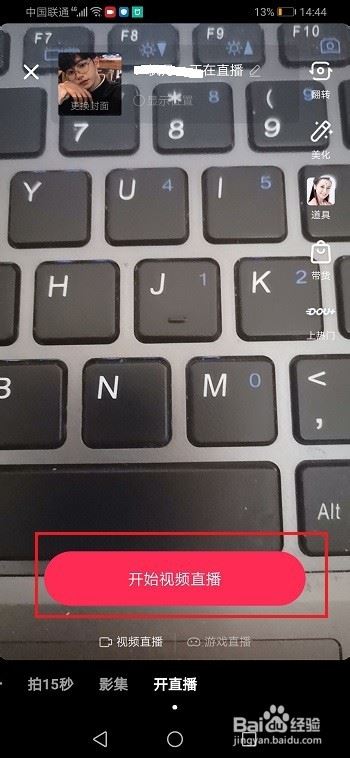 第一步手机上打开抖音,进去开直播界面,点击开启视频直播,如下图所示: