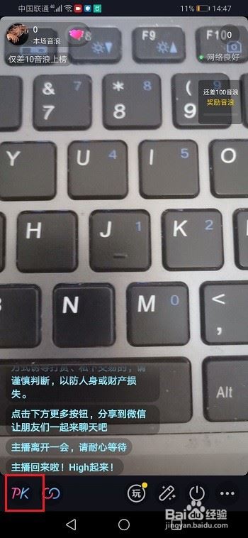 第二步进去直播之后,点击PK,如下图所示: