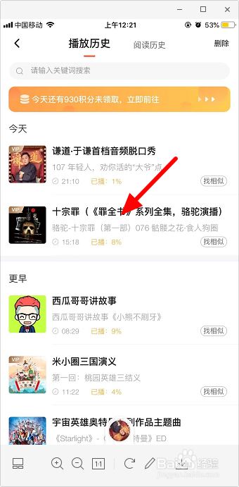 这里就可以找到自己听过的历史记录了,上面是当天的记录,下方可以找到更早的记录。