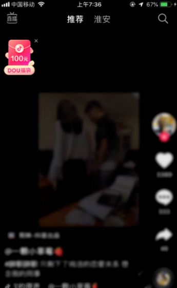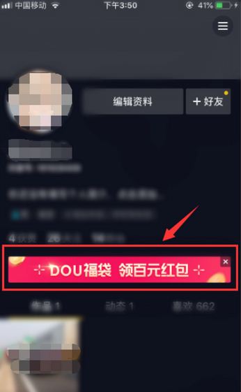 在个人页面,点击图示处的“dou福袋 领百元红包”。