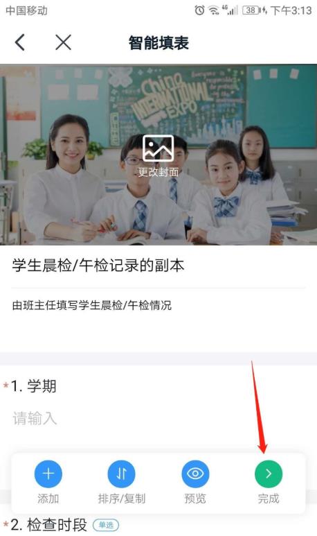 6、已复制表单。在表单编辑页面,可编辑表单标题和各项内容,点击右下角“完成”按钮,即可发布此表单了。