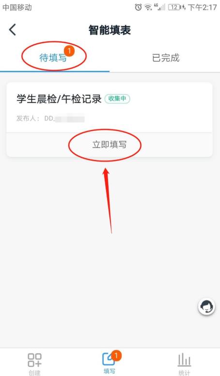 4、在智能填表界面,点击“待填写”选项卡,然后点击“立即填写”。