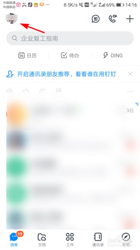 进入钉钉后点击头像;