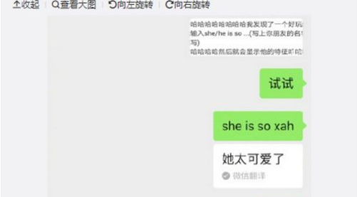 今天貌似还挺多人玩这个的,在微信当中,输入“she is so+姓名的缩写”。