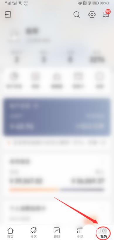 2、进入到招商银行app主页后,点击又下角【我的】选项