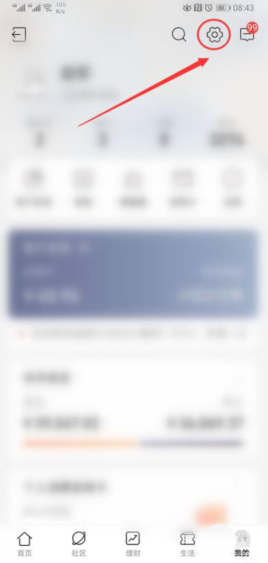 3、进入到招商银行app主页后,点击右上角的【齿轮】选项,进入到详细设置页面中。