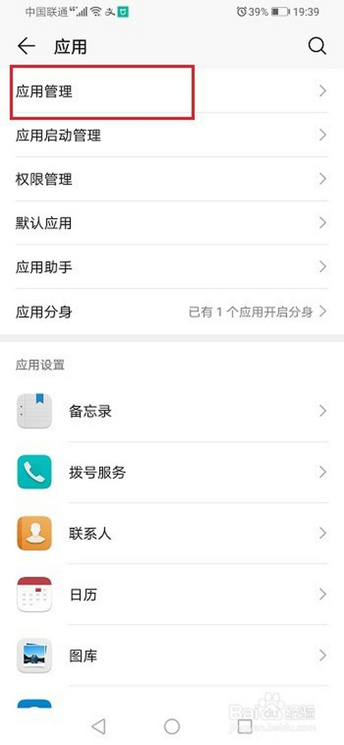 第二步在手机设置中,点击应用,选择应用管理,如下图所示: