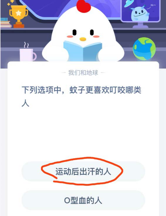 以上便是脚本之家小编为大家分享的"下列选项中蚊子更喜欢叮咬哪类人 蚂蚁庄园4月21日答案"的全部内容,希望能够帮到你,脚本之家持续发布更多资讯,欢迎大家的关注。