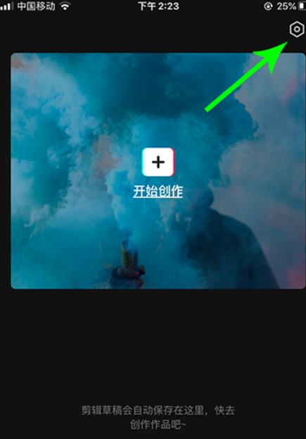 2、进入剪映后选择右上角的设置图标。