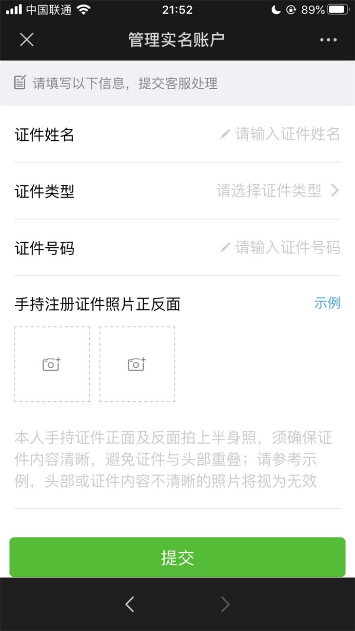 需要注意的是,最后管理实名账户,需要证件姓名、证件类型、证件号码,还要上传手持注册证件照片正反面。